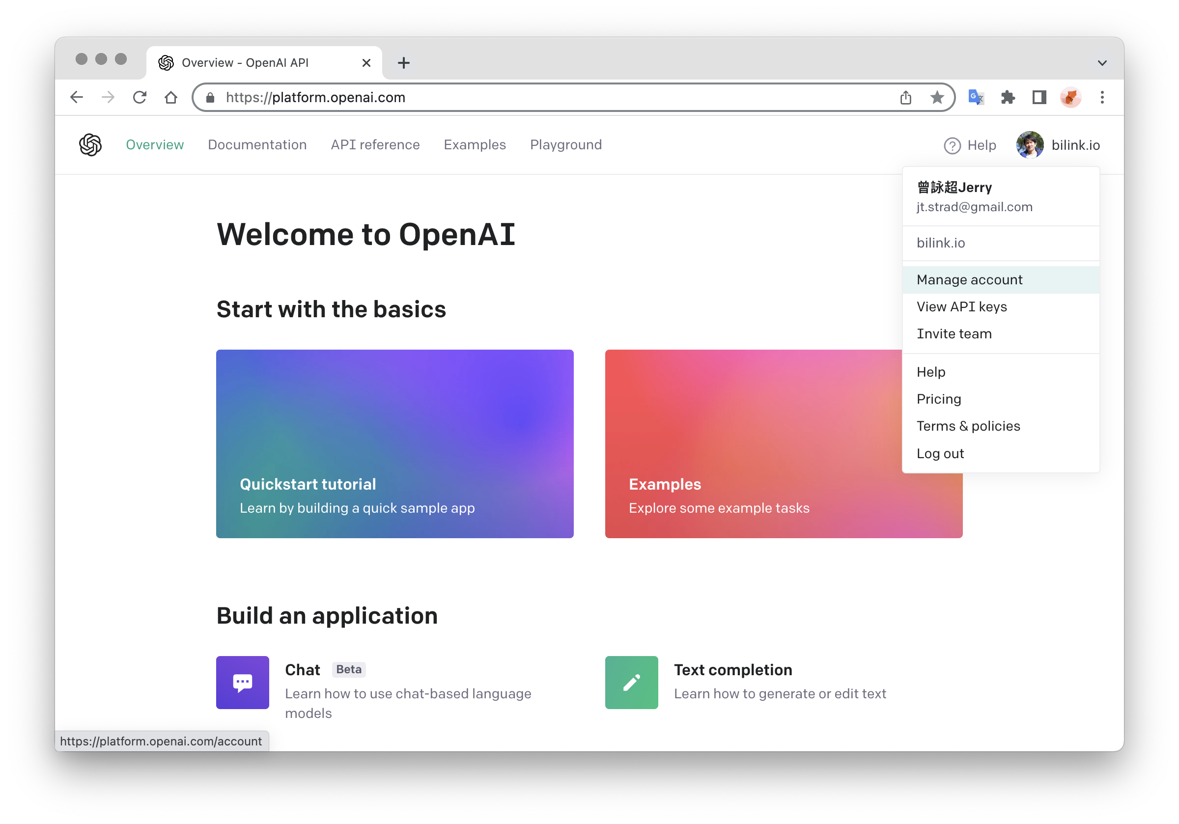 先至 OpenAI 網站 (https://platform.openai.com/) 申請帳號: