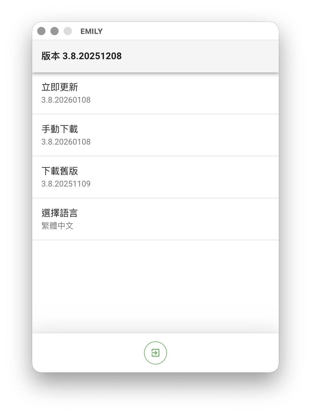點擊版本項目後會進入版本詳情頁。如果有可更新版本,頁面會出現「立即更新」與「手動下載」兩個選項,其中如果立即更新無法成功可以改用手動下載,原因是防毒軟體或端點保護軟體可能禁止下載可安裝執行的檔案。手動下載時要確保防火牆允許 cdn.emily-rpa.com 這個網域的連線。