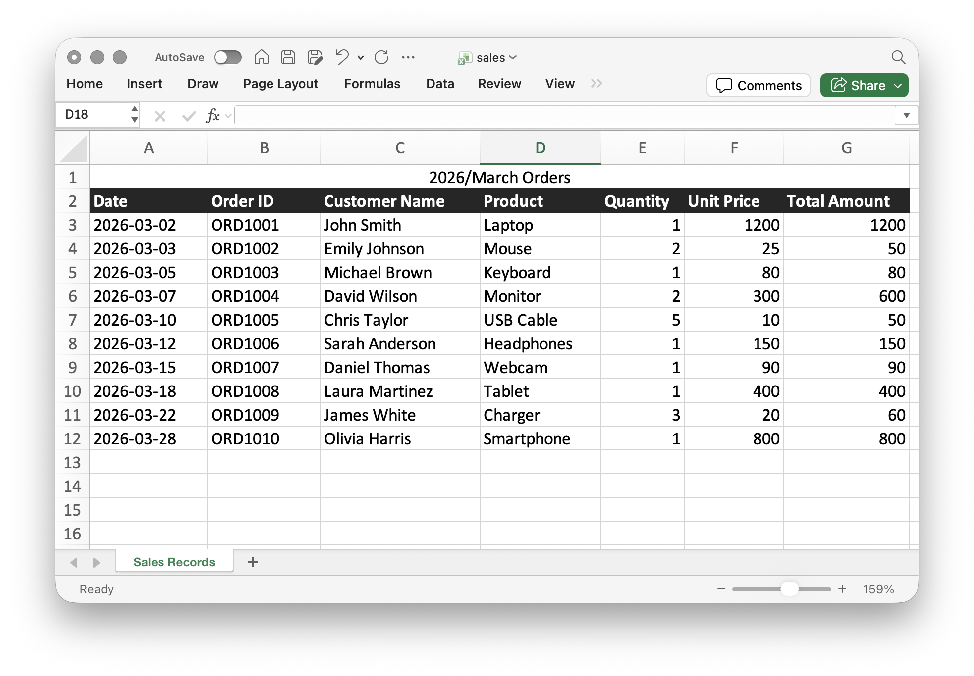 Using the following sales records table as an example, the goal is to find transactions with a total amount greater than 50,000.