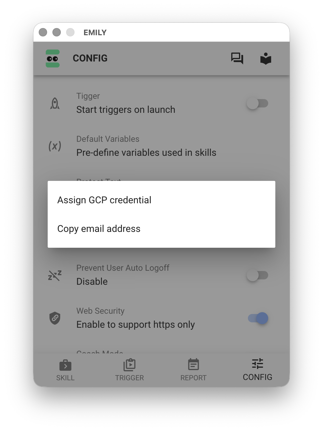 When the "Enter Fully Automated Mode on Startup" toggle is turned on, EMILY.RPA will enter fully automated mode directly the next time it launches. Combined with the operating system's "Auto Login on Boot" and "Launch Application on Startup" settings, this achieves the goal of having EMILY.RPA run fully automated as soon as the computer boots up.