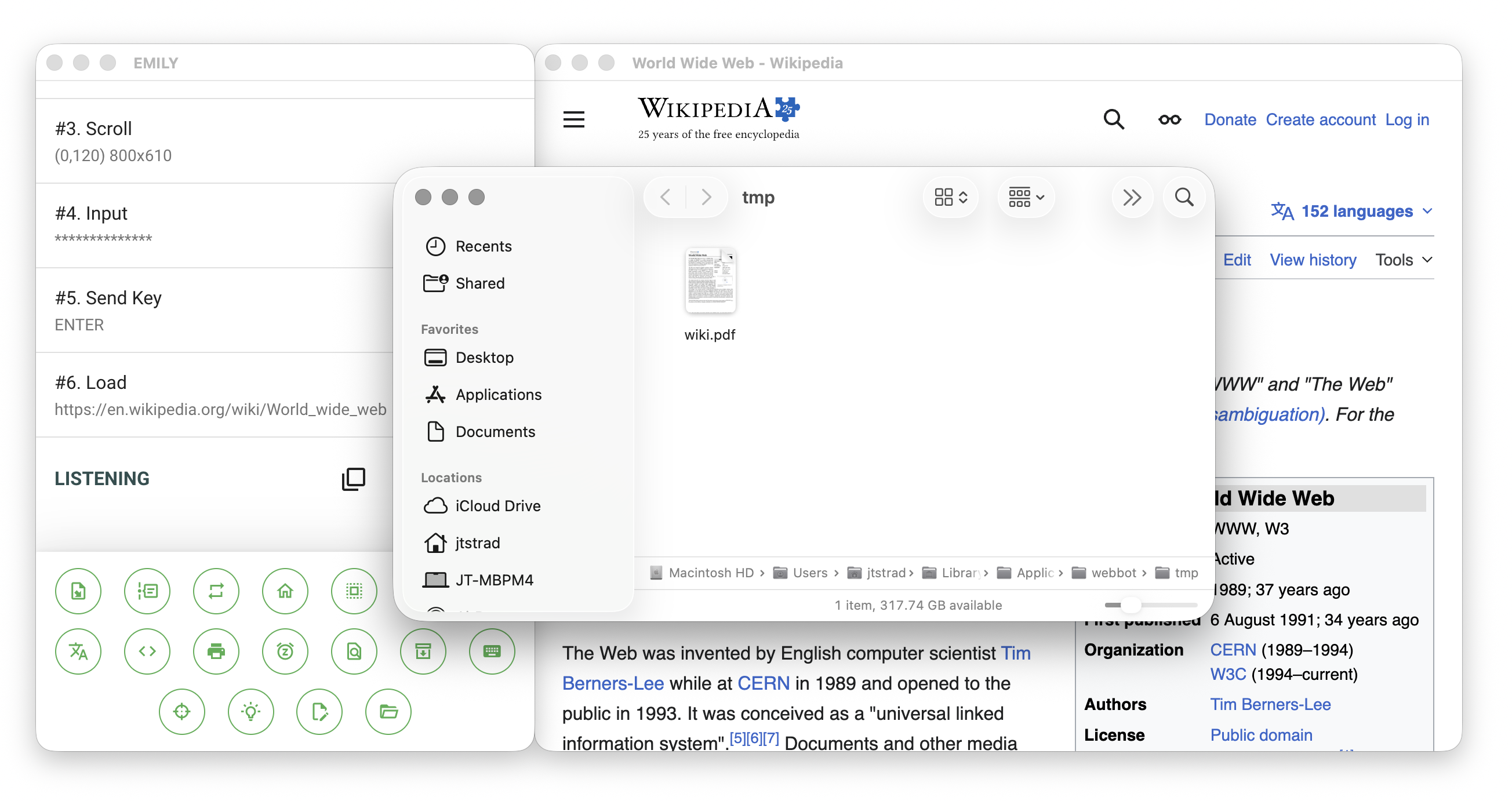 Now let's interact with the webpage and let EMILY.RPA record every step of the interaction. Make sure the keyboard cursor is in the webpage's search box. If it isn't, click the center of the search box to place the cursor there, then type world wide web.