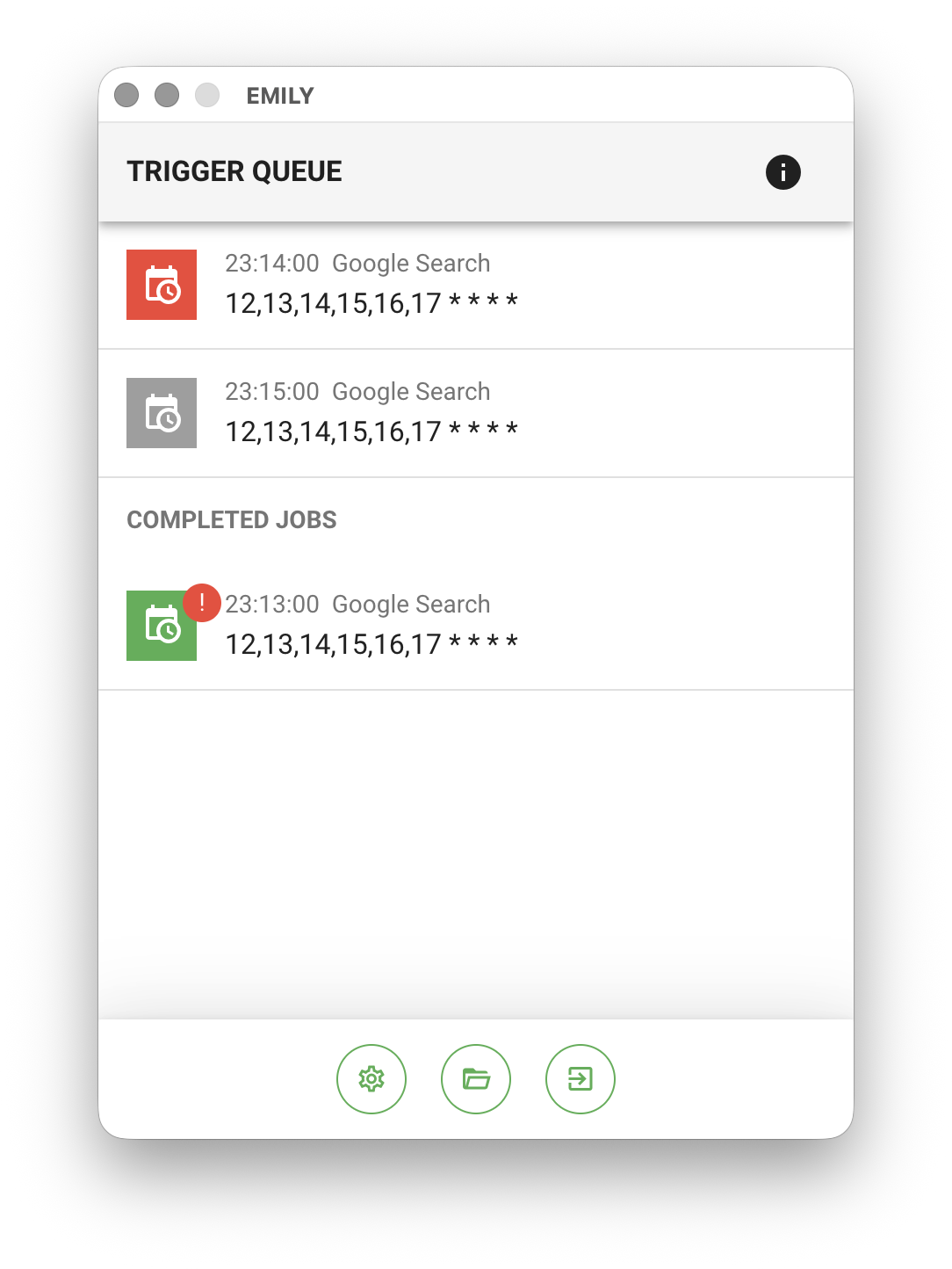 Once in fully automated mode, all skills that meet the trigger conditions are queued and executed sequentially — one job at a time. Other EMILY.RPA functions are unavailable until you exit fully automated mode, ensuring stability. For example, modifying trigger rules or entering Training Mode requires exiting fully automated mode first.