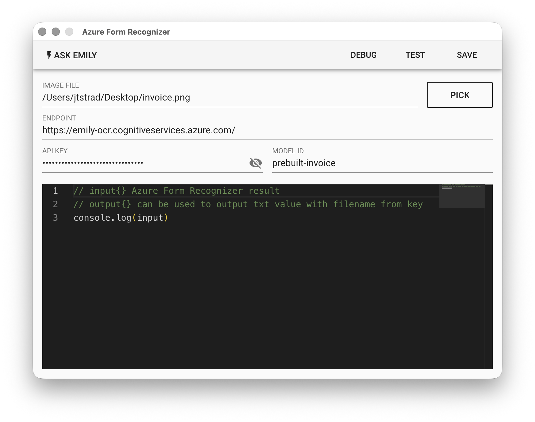 ENDPOINT - The Form Recognizer service endpoint created in Azure.