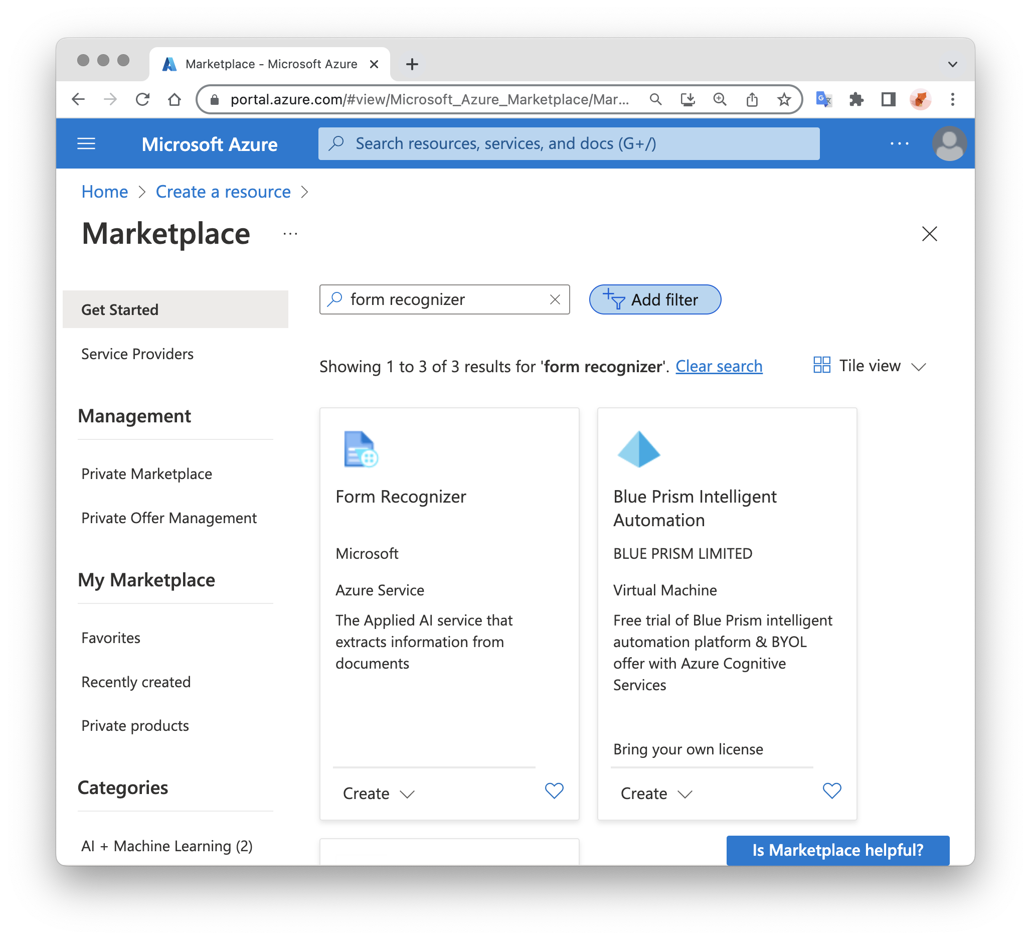 Then you can create a Form Recognizer. Generally, if this is the first Form Recognizer for this account, you can select F0 Free Tier, which allows free recognition of 500 pages per month: