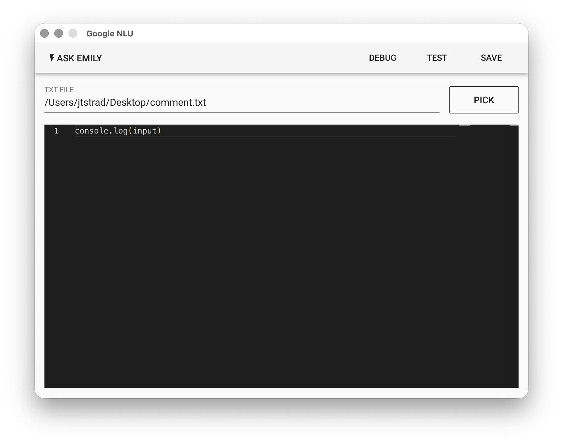 The input object stores the complete structure returned by Google NLU. Refer to Response data structure