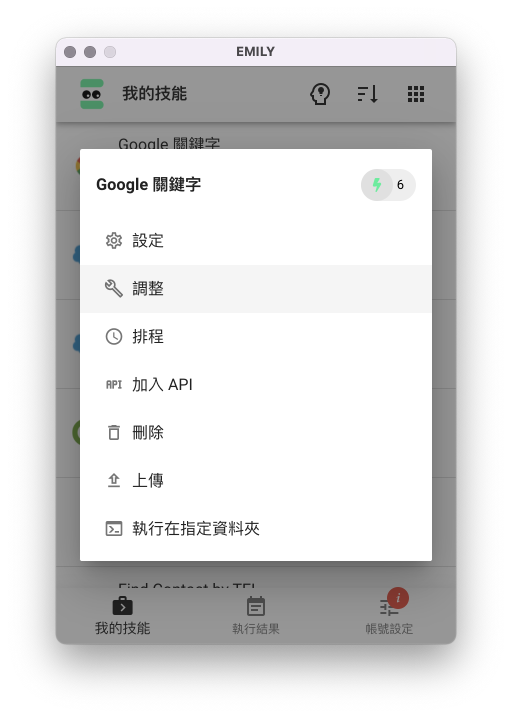 我們以上方 google 關鍵字的例子來說,如果下次希望這個技能搜尋的關鍵字能改變,使用者可以利用調整技能的方式,在鍵盤輸入這個步驟修改文字參數: