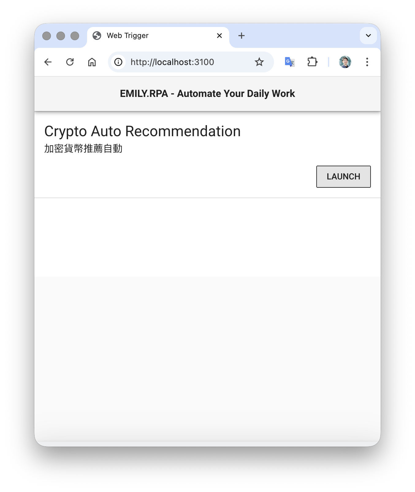 網頁觸發伺服器需要指定一個 Port 阜號,預設值為 3100,配合安裝 EMILY 這台電腦的 IP 地址可以形成網頁觸發網址。例如該電腦 IP 位址為 192.168.100.5 且 Port 設定為 3100 則網頁觸發網址為 http://192.168.100.5:3100