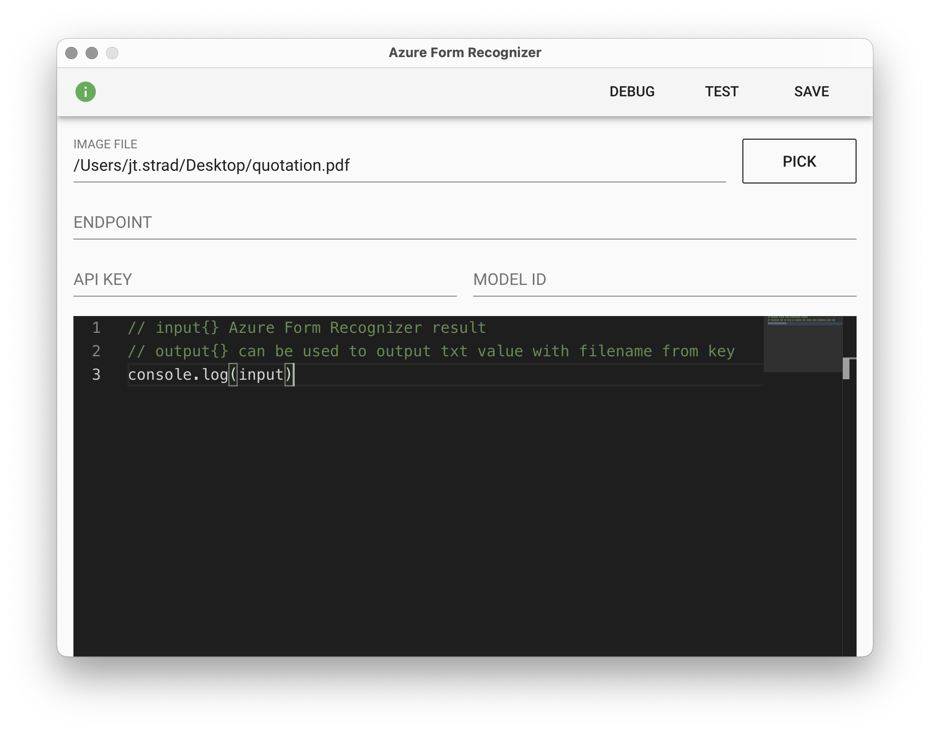 在 Azure 中開出的表格辨識器金鑰。