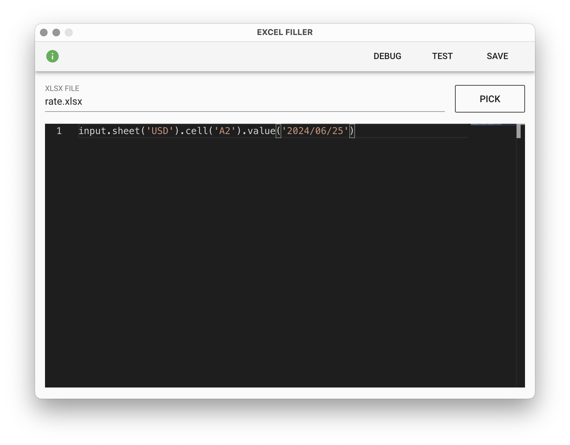 input 物件就是 EXCEL 文件本身,提供同步函式 activeSheet(), sheet(sheetNameOrIndex), sheets()