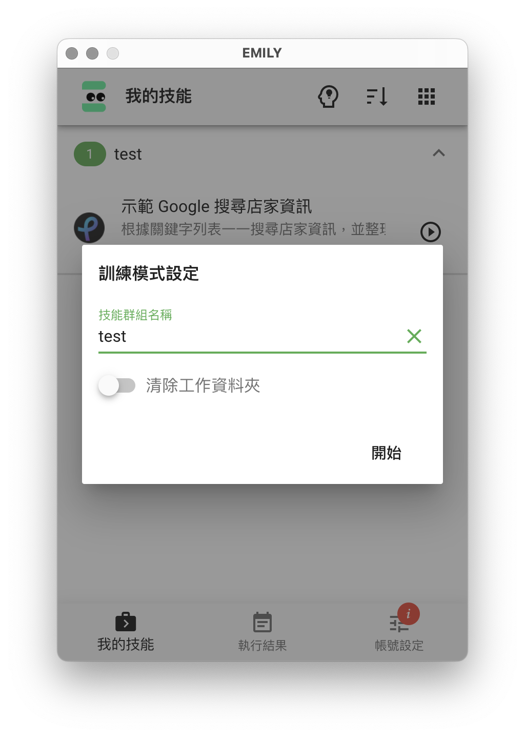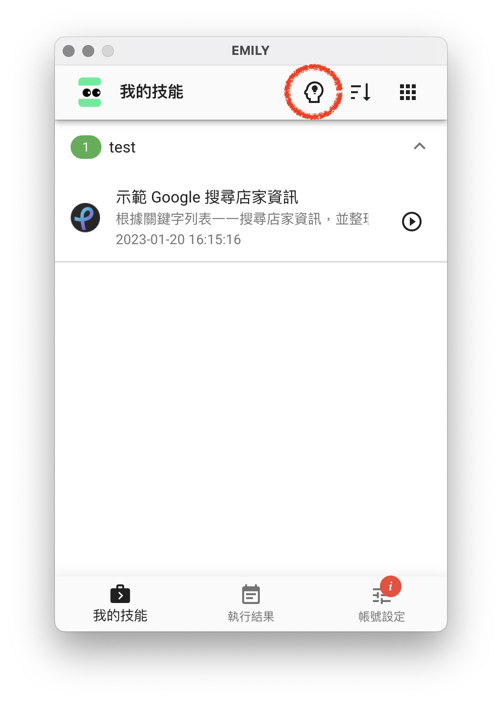 恭喜!你剛完成了第一個自動化技能的訓練,現在你本機上的 EMILY 機器人已經可以自動執行這個工作流程。